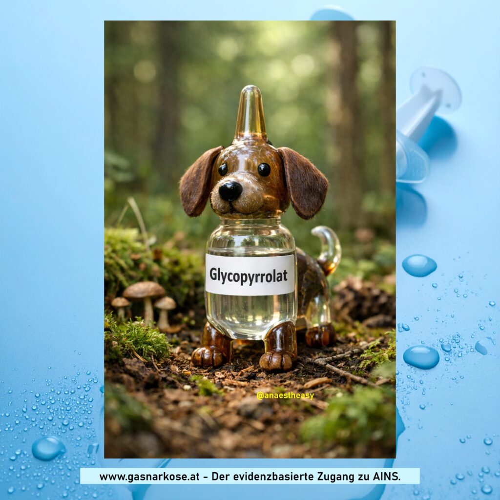 Zusammenfassend ist Glycopyrrolat ein Medikament, welches ich äußerst häufig verabreiche. Wiewohl die Fachinformation von Esketamin die Vorgabe von Atropin (oder Glycopyrrolat) bei geplanter Sedoanalgesie oder Narkoseeinleitung zur Reduktion der Hypersalivation (und somit Atemwegskomplikationen wie Laryngospasmus) empfiehlt, so konnte dies nicht bestätigt und in der Tat sogar das Gegenteil nachgewiesen werden (oder hier, hier). Aufgrund des verzögerten Wirkeintritts ist es bei zeitkritischen Notfällen (z.B. hämodynamisch instabiler proximaler AV-Block Grad 3, chirurgischer Vagusreiz zB während Carotis-OP) Atropin unterlegen. Der i.v. Stellenwert bei AECOPD oder Asthmaanfall ist unklar; ich verabreiche es als Ultima Ratio.