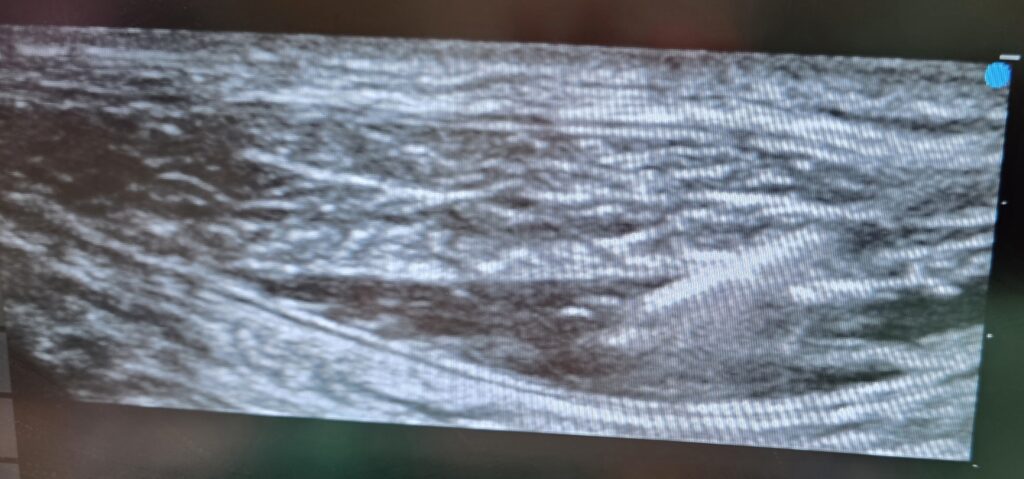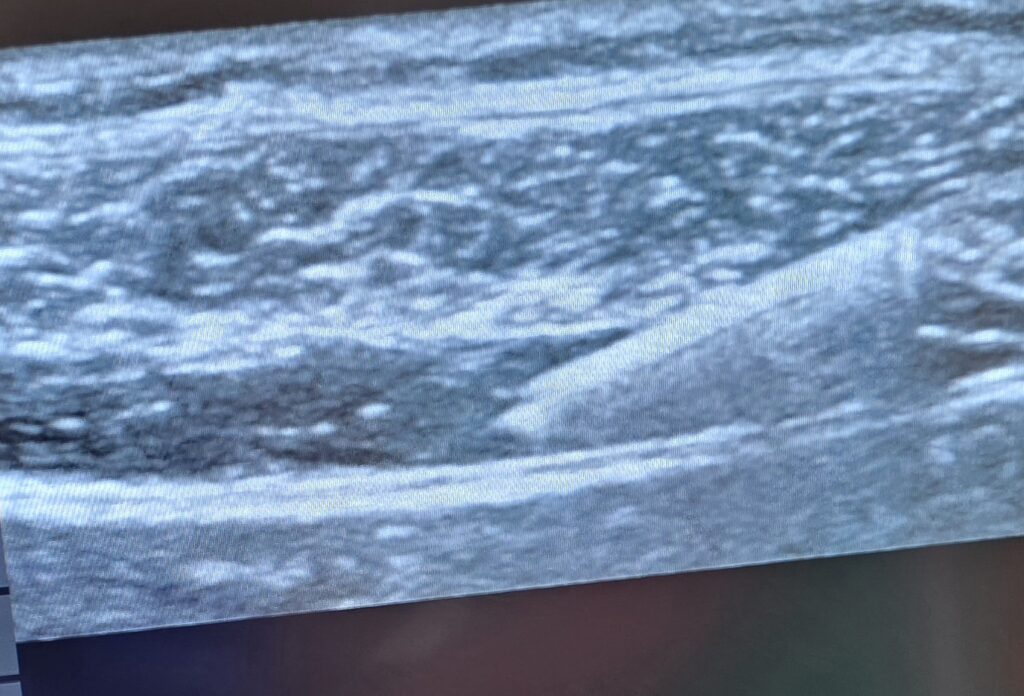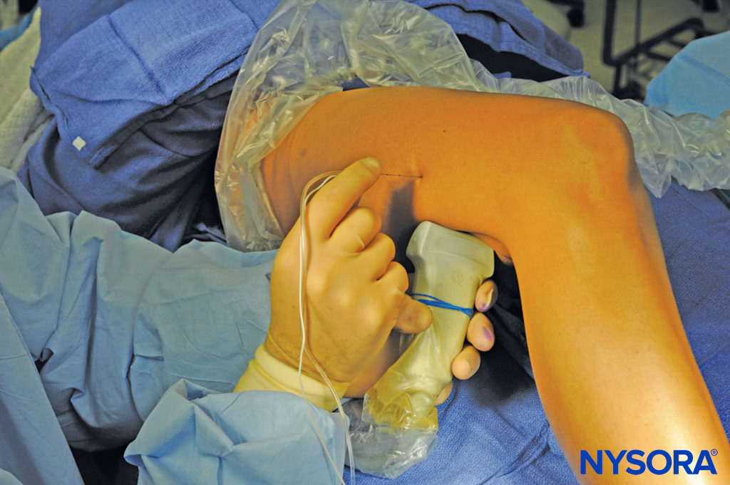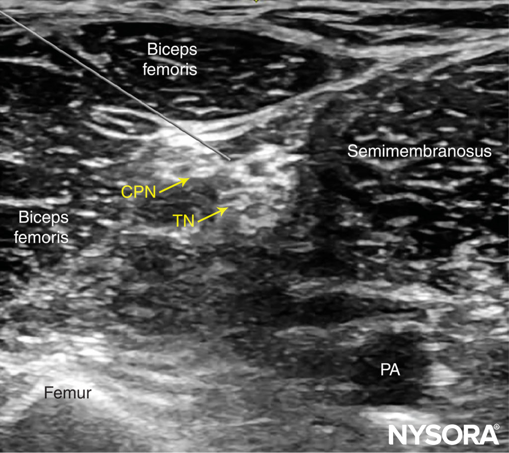 Der Poplietalblock dient der Blockade des N. ischiadicus in der Vloka-Scheide kurz vor seiner Aufteilung zum N. tibialis und N. fibularus (peroneus) communis. Somit kann beinahe der gesamte Unterschenkel und Fuß betäubt werden. Die mediale Seite des Unterschenkels gehört dem N. saphenus, einem Ast des N. femoralis. Will man also z.B. eine Verplattung des Unterschenkels oder Zehen- bzw. Unterschenkelamputation operieren, so bietet sich aus anästhesiologischer Sicht eine Blockade des N. ischiadicus sowie des N. saphenus an. Ich verabreiche zum N. ischiadicus entweder 20 ml Mepivacain 1,5% + 2 ml NaBic 8,4% + 1 ml Clonidin (0,15 mg) ODER 20 ml Ropivacain 0,5% + 1 ml Clonidin (0,15 mg). Den N. saphenus betäube ich separat mittels 5 ml Mepivacain 1,5% ODER 5 ml Ropivacain 0,5%. Dexamethason 4 mg i.v. gibt’s dann auch noch dazu. Sehr gerne lege ich bei chirurgischen Patienten mit ausgeprägten Wundstörungen am Unterschenkel / Fuß (z.B. aufgrund DM oder PAVK) einen Nervenkatheter zum Ischiadicus, was in einer potenten Analgesie auf der Station mündet (Infundieren von Ropivacain 0,2% mittels PCA – patient-controlled analgesie mit Schmerzpumpe). Ich erinnere mich gut an einen Diabetiker mit suizidalen Gedanken aufgrund höllischen Schmerzen in beiden Unterschenkeln bei ausgeprägtem diabetischem Fuß mit Wundheilungsstörung. Er war zu regelmäßigen Debridements gelistet. In der Regel analgosediere (Link) ich Patienten für den Block (und auch Kathetereinlage), weil die Lagerung ultraschmerzhaft ist. Dazu nutze ich regelhaft Esketamin. Ich blockierte beidseits Ischiadicus und Saphenus und legte dann beidseits Ischiadicusnervenkatheter ein. Fun Fact: dieser Patient hat in 45 Minuten fraktioniert 150 mg Esketamin verblasen und hat dabei stets spontan in Dissoziationsanästhesie geatmet! Die beidseitigen Schmerzkatheter waren auf Station eine extreme Erleichterung des Patienten; er konnte wieder lachen und mobilisiert werden und war extrem dankbar.
