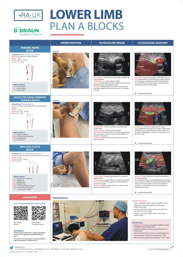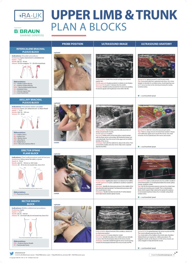 Das Royal College of Anaesthetists in Great Britain and Ireland (RCoA) ist eine der anerkanntesten ärztlichen Fachgesellschaften für Anästhesiologie weltweit. Es beschäftigt sich mit den großen Themen unseres Fachgebiets: Anästhesie, Intensivmedizin, Notfallmedizin, Schmerzmedizin und Palliativmedizin. Da jeder Anästhesist in seiner Ausbildung RA erlernt und diese als Facharzt auch eigenständig und eigenverantwortlich durchführen muss, hat das RCoA aufgrund der großen Vielfalt an möglichen Blöcken sog. Plan A Blöcke (Link) formuliert, die jeder in der Ausbildung erlernen und beherrschen muss. Zu einigen dieser Blöcke findet ihr eine nähere Beschreibung von mir.