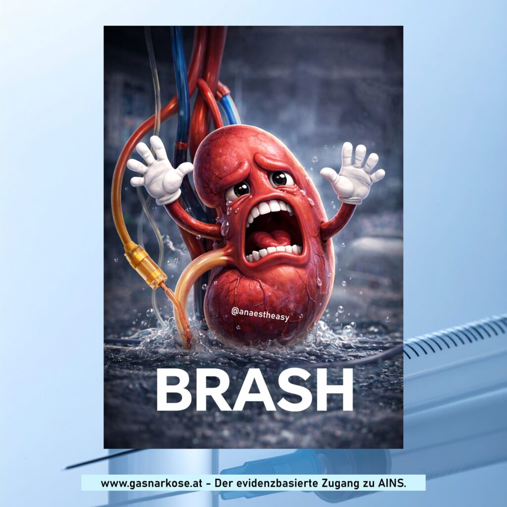 Eine Besonderheit ist das BRASH-Syndrom, welches erstmals 2016 beschrieben worden ist (Link). Es umfasst Bradykardie, Renales Versagen, AV-Blockade, Schock und HyperK (Link). Der Pathophysiologie zugrunde liegend ist zumeist ein akuter Nierenschaden (acute kidney injury ~ AKI), der zur verminderten renalen Elimination von therapeutisch optimal eingestellten AV-Blockern (Beta-Blocker, Calcium-Antagonisten) führt. Aggraviert wird das ganze durch eine HyperK, bedingt durch AKI und auch Beta-Blocker (-> Blockade der Na-K-ATPase). Eine zusätzlich Einnahme von ACE-I oder ARB verstärkt die HyperK natürlich. Es drohen fatale Arrhythmien. Die Bradykardie und Hypotonie bzw. letztlich Schocksymptomatik (merke: Schock ist nicht Hypotonie, Link) führen zu einer weiteren Minderperfusion der Nieren und Förderung der Schädigung. Es entsteht ein Teufelskreis, welcher zügig durchbrochen werden muss. Die Therapie erfolgt symptomatisch und fokussiert sich auf Behandlung der Bradykardie (siehe Atropin, Glycopyrrolat, Adrenalin, Schrittmacher), HyperK (Lokelma, Salbutamol, Insulin-Glucose, Calcium ~ umstritten, Link) und AKI (z.B. Rehydratation, wenn Hypovolämie Ursache ist; ultimativ Dialyse). Der Furosemid-Stresstest (Link) kann erwogen werden, um die Notwendigkeit einer künftigen Dialyse abzuschätzen. Der Blutzucker muss engmaschig überwacht werden, da eine Überdosis mit Beta-Blockern zu Hypoglykämie, eine Überdosis mit Calcium-Blockern zu einer Hyperglykämie führt.