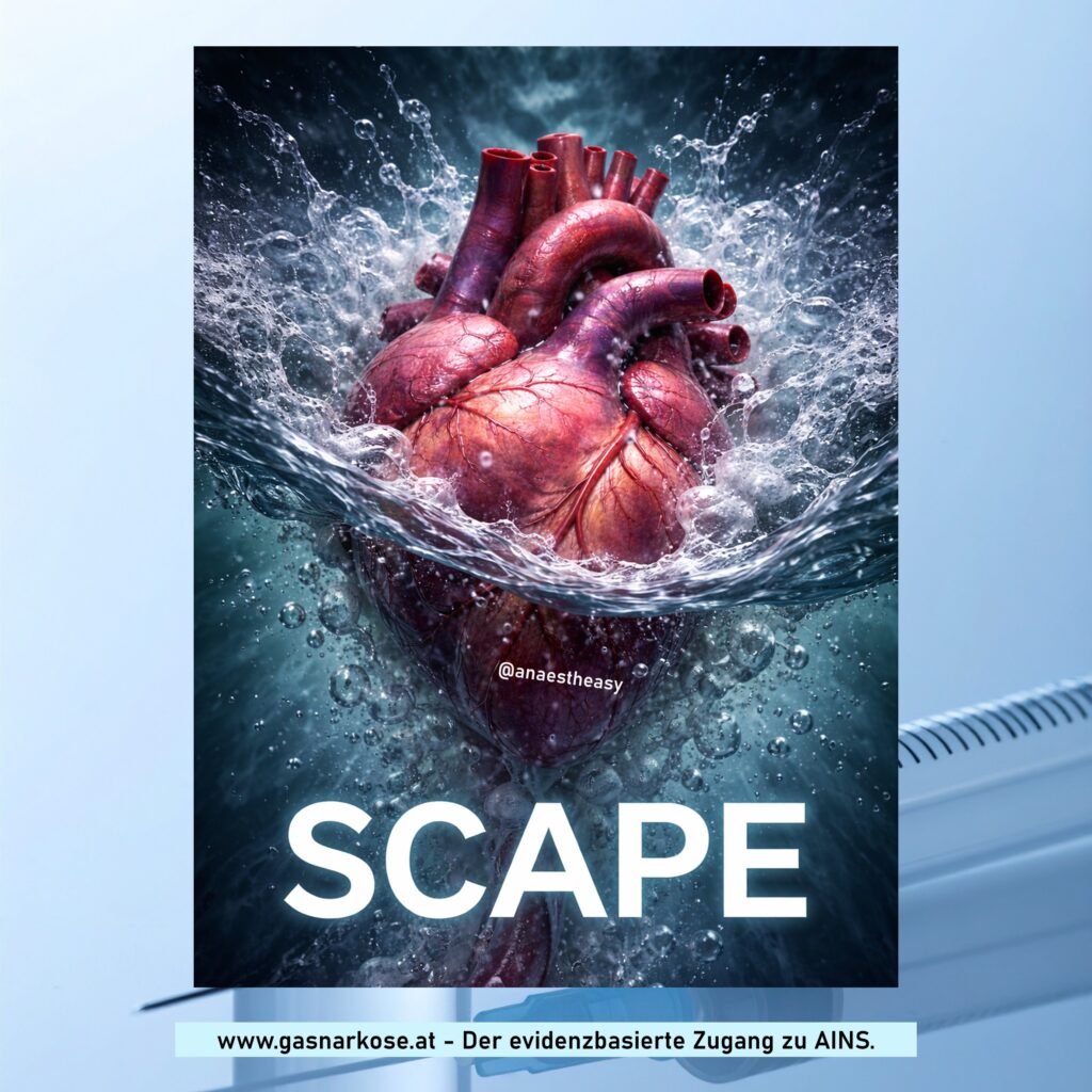 SCAPE steht für „Sympathetic Crashing Acute Pulmonary Edema“ und bezieht sich somit auf ein cardiales Lungenödem aufgrund einer hypertensiven Entgleisung. Es handelt sich um eine Form des hypertensiven Notfalls und ist daher akut behandlungsbedürftig. Als Ursache kommt z.B. eine Non-Adhärenz mit einer antihypertensiven / antiherzinsuffizienten Therapie in Frage, was zu einem reflektorischen akuten Blutdruckanstieg führt. Auch eine Intox mit Cocain ist als Ursache möglich. Die Patienten präsentieren sich agitiert, tachydyspnoeisch, hypoxisch (Lungenödem), tachycard und hypertensiv. Beinödeme finden sich nicht, da der Catecholaminsturm zu einer Verlagerung des Blutes in die Lungenstrombahn führt. Unbehandelt führt das Krankheitsbild zum Tode, da die Patienten schwer kompromittiert sind.